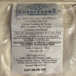 New in a Bag Cuddledown Goose Feather and Down 95/5 Euro Pillow, Cream