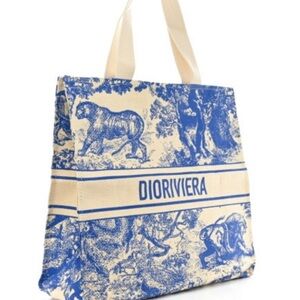 New in bag Authentic Christian Dior VIP Dioriviera Raffia Tote in Tan & Blue