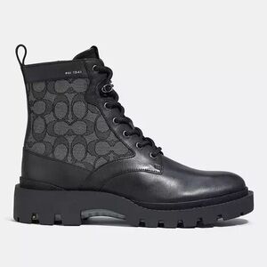 For city streets and off-road terrain, our lightweight Boot is made with proprietary Coach CitySole technology for maximum comfort and flexibility. Based on vintage military styles, this lace-up silhouette sits at the intersection of fashion and function. Crafted of richly burnished leather and our environmentally conscious Signature jacquard made from a blend of organic cotton, it features a layer of shock-absorbing cushioned pods that provide all-day support. It's finished with a durable lug sole for superior movement and traction. Your feet will thank you. ١٠٧-٣٥٠#