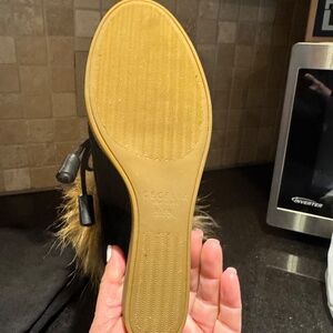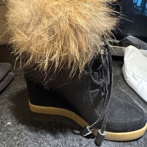 Gorgeous black suede wedge boot with fox fur at ankle. Sz 5.5 new in dust bags in box. Paid 350.