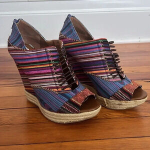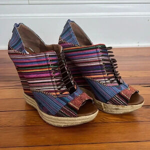 Keywords: chinese laundry, stripes, make my day, wedges, wedge sandals, new in box, bohemian