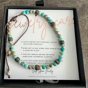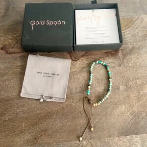 New in box Gold Spoon Turquoise Tone Beaded Adjustable Bracelet