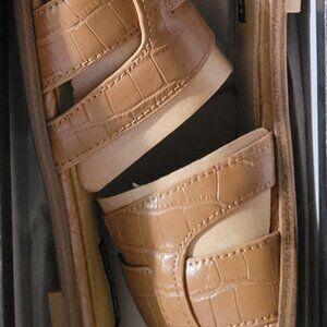 New in box Nine West Germani3 flat slide sandals medium brown 9m
