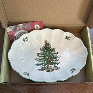 New in box Spode Fluted Oval Server Christmas Tree Dish 8.5”
