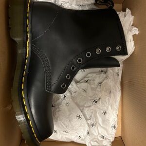 New in box black leather doc martens combat boots. Size 7 US/or UK 5. Never worn