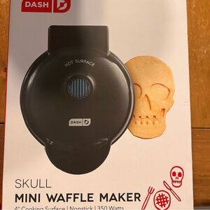 New in box dash mini waffle maker skull Halloween spooky black 13” breakfast