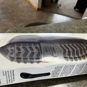 New in box men’s size large – extra large, large fits 9 1/2 to an 11. 100% waterproof stretch rubber over shoes. Black.. Hi-Top work rubber. Deep thick tread offers better self cleaning improve traction on slippery surfaces and improved wear.