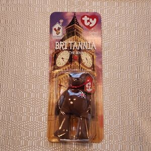 Unopened complete set of International Ty beanie babies featuring Britannia (Great Britain), Glory(United States), Erin(Ireland), and Maple (Canada). These bears have been stored in an airtight plastic tote in non smoking home