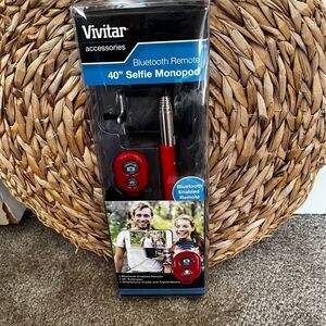 New in box vivitar selfie stick red bluetooth remote 40” selfie monopod