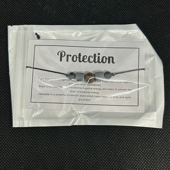 Bracelet made with Tiger Eye, Black Onyx and Hematite. On drawstring cording.