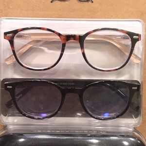 New in package Rae Dunn 2.00 Reading Glasses Set - Brown Animal Print and Black- Cute have the words LOOK on the side