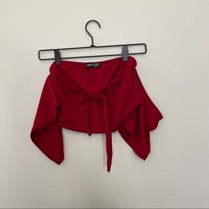 New in package shein red tie bust crop top off the shoulder stretchy sz.S(4)