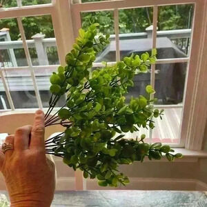 New in plastic Artificial Flower Stems Faux Eucalyptus 4 stems included