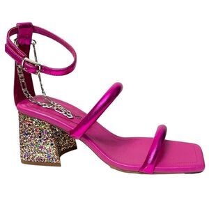 Oh so sweet with a sprinkle of edge. Featuring a chunky heel, square toe, + adjustable ankle straps. Imagine wearing the chain with black denim, a leather jacket, + graphic tee. Then without the chain with dresses, skirts, + business attire for the office. It's the heels that are going to show all the best parts of your personality :)