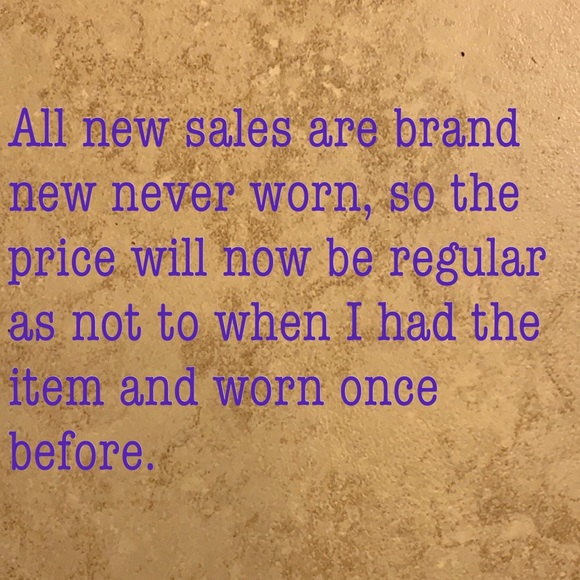 All new pictures that I am posting are going to have every size and all colors they will be a different price than the first ones in my closet due to the first ones in my closet I have worn once or twice before the ones that are new have never been worn so please feel free to shop and let me know what you’re looking for thank you
