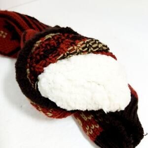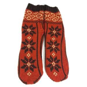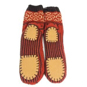 New no tags rust and brown fair Isle Nordic Icelandic sweater knit slipper socks with sherpa insole for soft cushy warmth and leather padded bottom. Not sure if this is real leather.