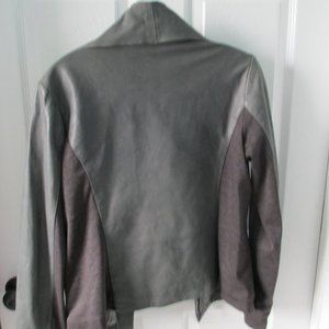 New, never worn, Bod Christensen lightweight leather jacket. Contains knit inserts that provide stretch and better fit. Fully lined in soft knit fabrick