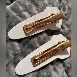 Accessorize your hair with these adorable hair clips! Each set includes a right-facing and left-facing clip, so you can wear them together perfectly. These feature shimmering holographic that floats inside the die-cut character shapes.