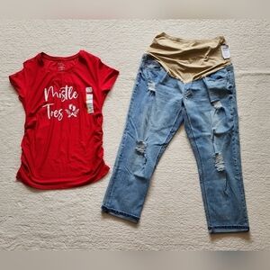 New maternity holidays Christmas clothes bundle of top and jeans size S and XXL