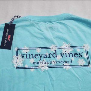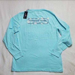 New men's M Vineyard Vines snowflake logo box long sleeve pocket tee t-shirt
