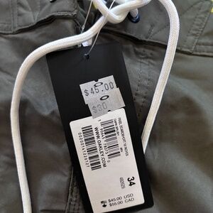 New with tags. Mens Oakley board shorts. Pixel Boardshort, 18 inches long. Various waist sizes. Army green and yellow.
