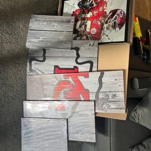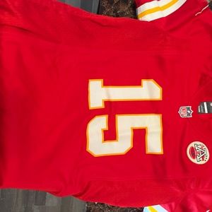 New mahomes Super Bowl framed poster and wall canvas and a large womens size mahomes on field jersey
