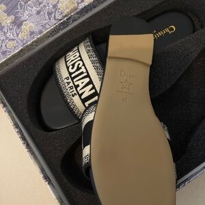The Dway slide has a timeless and emblematic silhouette. The slide's upper features a black embroidered Christian Dior Paris signature for an unmistakable touch. The streamlined design slips on easily and offers effortless style.