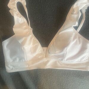 New never worn White Ruffled Straps & Top Bikini. Size Large. Removable Pads in top. 95% polyester 5% Elastane.
