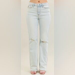 Elevate your style with these light blue distressed jeans. Perfect for a casual day out, these jeans offer comfort and a trendy look. Made by Judy Blue. New release!!
