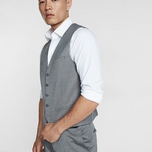 New nwt XXL EXPRESS Gray WOOL Blend Oxford SUIT VEST men's wedding prom stretch