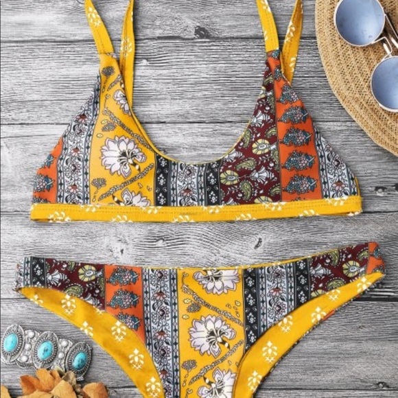 BRAND NEW! TAGS STILL ON! Adorable patchwork yellow bikini set!