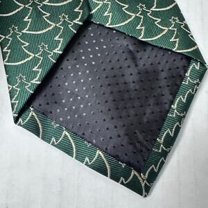 New pierre cardin green and gold christmas tree print 100% silk tie