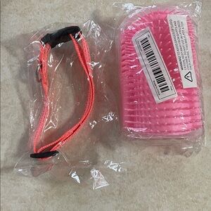 Pet set includes a pink brush ( scratcher) with screws and pink collar.