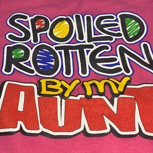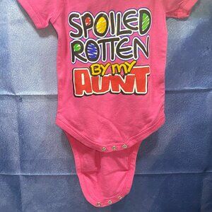 New without tags, pink short sleeve baby onesies "Spoiled Rotten By My Aunt" 12 months old Rabbit Skins 100% cotton with 3 snaps at the bottom of the onesies.
