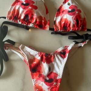 The bottoms are a medium pro cut with ties on the sides to insure a perfect fit.