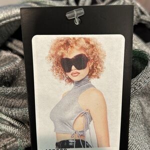 New poster girl cold snap cropped cut out side tie tank silver METALLIC XXL