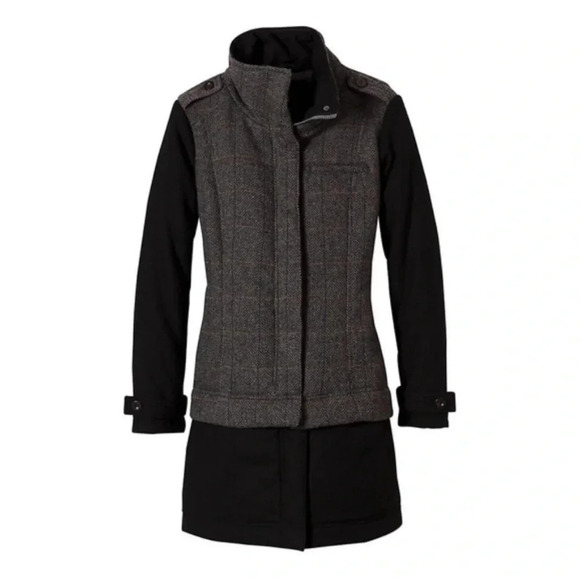 New prAna Wool Coat Gravel chevron Caprise Convertible jacket insulated plaid