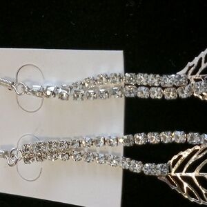 New rinestones earrings tassels with silver tone leaves accents dangles it end