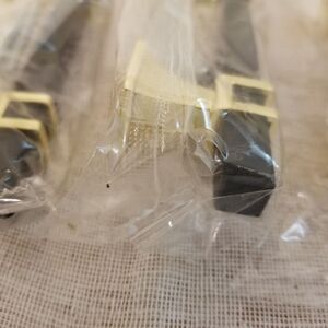 New set of 10 Redunest black/Gold cabinet pulls , all individually sealed with hardware. Also two extra bags of screws and a tool are included. 76 MM hole centers, and 5" wide overall.