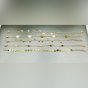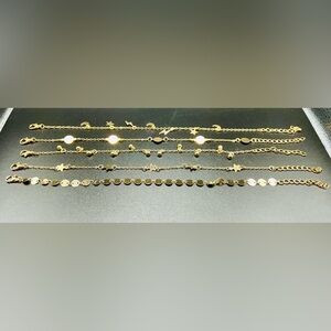 Enhance your style with this elegant gold charm bracelet set. Perfect for any occasion, these bracelets add a touch of sophistication to your look.