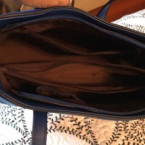 NWOT- beautiful color blue multi compartments inside - comes with strap to use as shoulder bag- zippers up