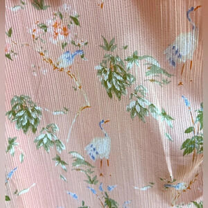 •	Print: Pink with heron & floral accents