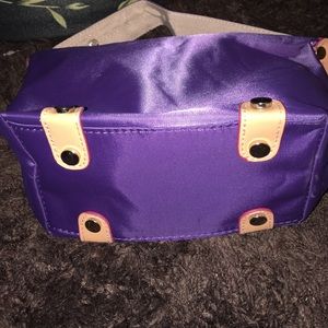 New without tags small purple handbag. Still has the plastic that held the tag. Double zippered compartments and front zippered pocket. Star ⭐️ zipper pulls. Approx size is 9" wide and stands 6". Width or deep is 4". Top handle drops about 5". Purple lined. Bottom feet to protect from dirt.