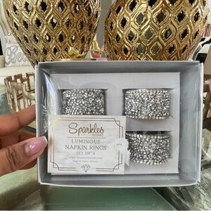 Elevate table settings with the Strass Napkin Ring set. Four stainless steel rings, hand-stoned with glass rhinestones, offer durable elegance. Pair with matching items for a luxe look. Easy to clean and reusable.