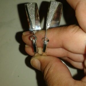 I love these earrings they sparkle no matter what! The front of.the silver earring has silver glitter that does not come.off either. The back is silver. Thay are about 2"long. Look fabulous on ladies!