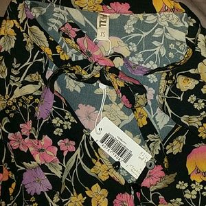 Brand new with tag. Sold out flower child sayulita short sleeve blouse in nightshade floral by spell designs byron bay & the gypsy collective. Extra Small XS. Features front neck tie, loose fit and buttons all the way down so it can be worn open or tied. Very reluctant to sell. No trade please. The price is firm. Price reflects high percentage posh commission fees