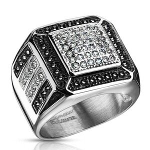 Clear w/ Black CZ Border Micro Paved Cast Ring Stainless Steel