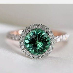Gorgeous Two Tone 925 Silver Rings Women Emerald Jewelry Ring