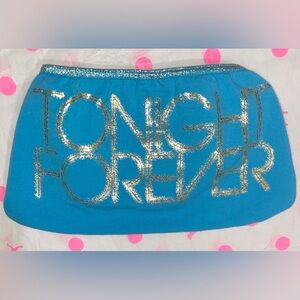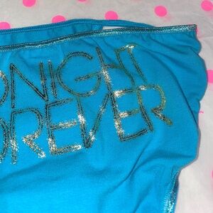Color bright blue with gold “tonight forever “ print , lurex gold thread shimmer bling trim