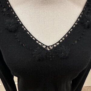 New v-neck Jones Wear size large dress knit shirt with floral details at neck